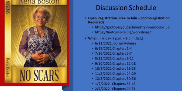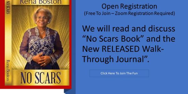 WELCOME! Revelations of Life awaits YOU! It’s a 9-month adventure. We will read, reflect, review, and discuss “LIFE” using the “No Scars Book and the newly released, "Walk-Through Journal”. Those who already have the book will need to purchase the “Walk-Through Journal”. Others will need to purchase the Book and the Journal. Hurry, June 18, 2021, the first discussion, is just around the corner. Register Now! Request your material(s)! Read Chapters 1-4! Registration Button and The Link to the Shop.